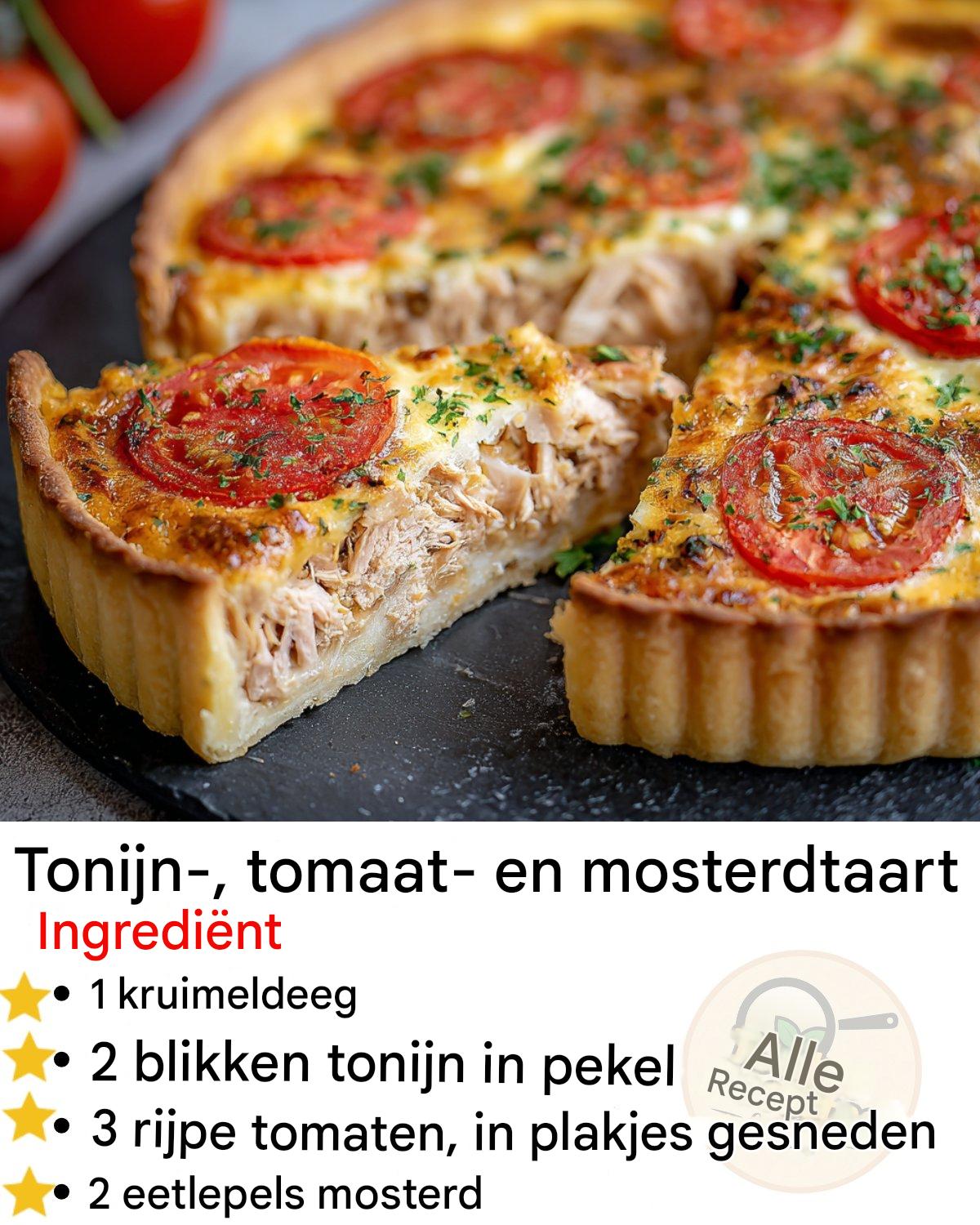 🥧Tonijn-, tomaat- en mosterdtaart. Een smakelijke taart, eenvoudig en snel te bereiden, perfect voor een lichte maaltijd of een spontane lunch.