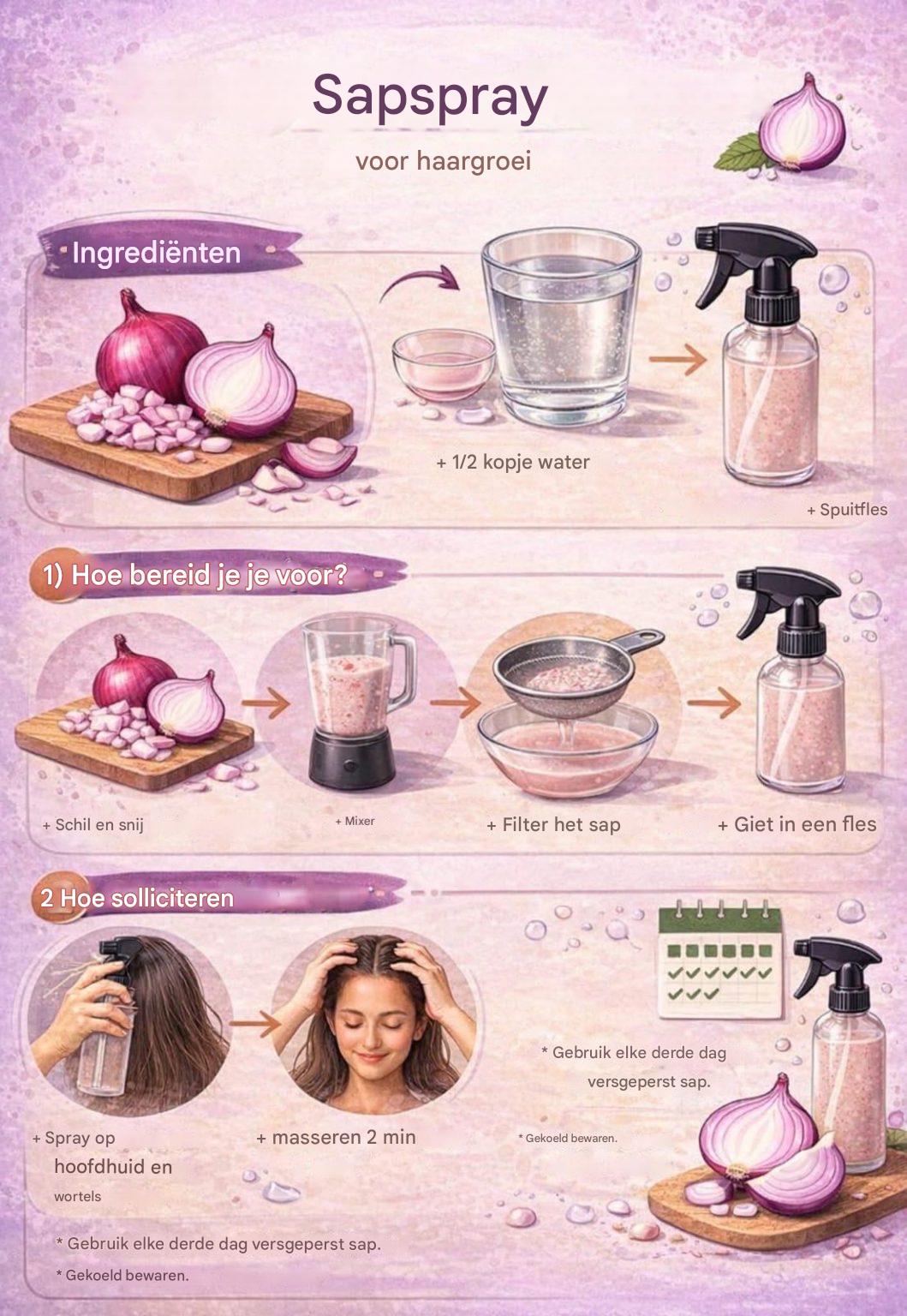 een verse ui, 1/2 kopje water en een schone spuitfles.