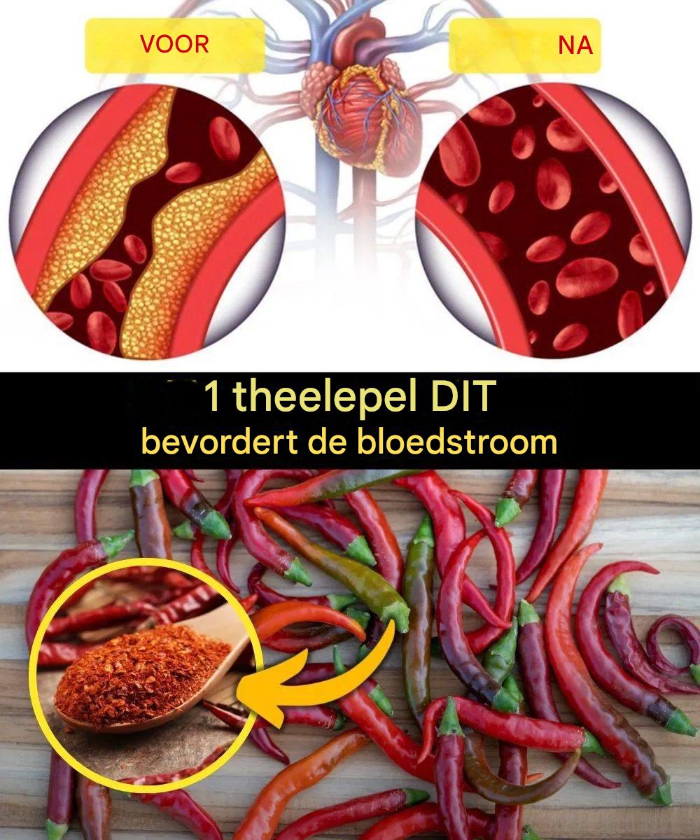Een slechte bloedsomloop kan vermoeidheid, koude handen en voeten en mogelijk ernstige gezondheidsproblemen veroorzaken. Maar wist je dat slechts één theelepel cayennepeper de bloedsomloop direct verbetert? Deze krachtige natuurlijke stof wordt al generaties lang gebruikt om de bloedsomloop, de hartgezondheid en de algehele vitaliteit te verbeteren.
