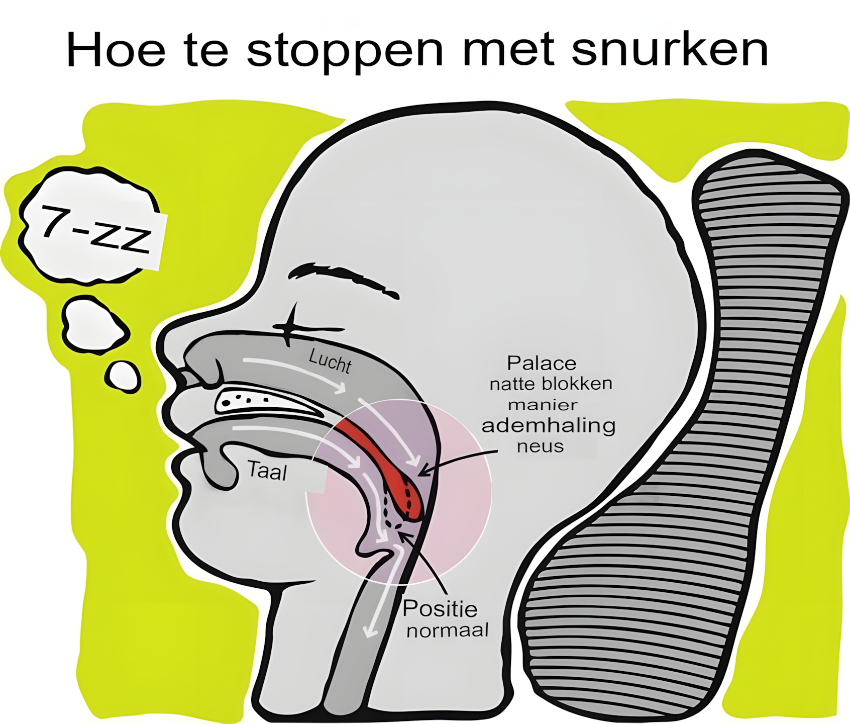 Het zijn de spieren van de keelholte die, wanneer ze ontspannen zijn, de bovenste luchtwegen blokkeren. Daardoor ontstaat snurken.