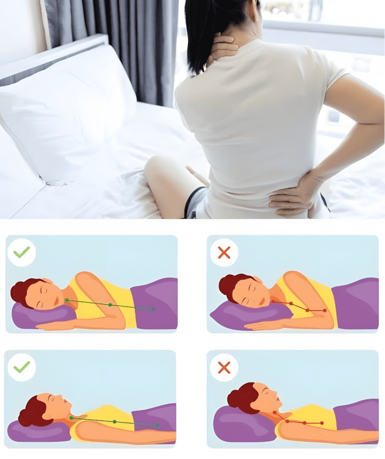 Het kiezen van het juiste kussen is cruciaal voor een goede nachtrust en een goede gezondheid. Een kussen dat niet is ontworpen om aan uw behoeften te voldoen, kan verschillende gezondheidsrisico’s met zich meebrengen, waaronder: