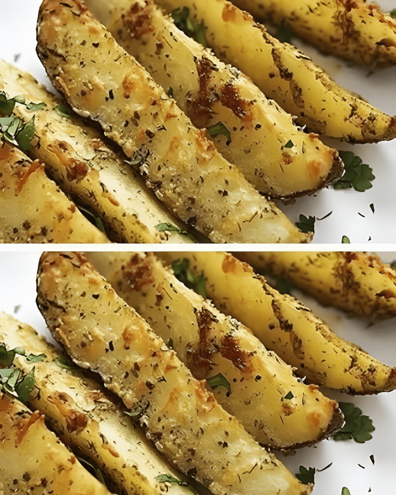 Aardappelpartjes met Parmezaanse kaas en gebakken knoflook