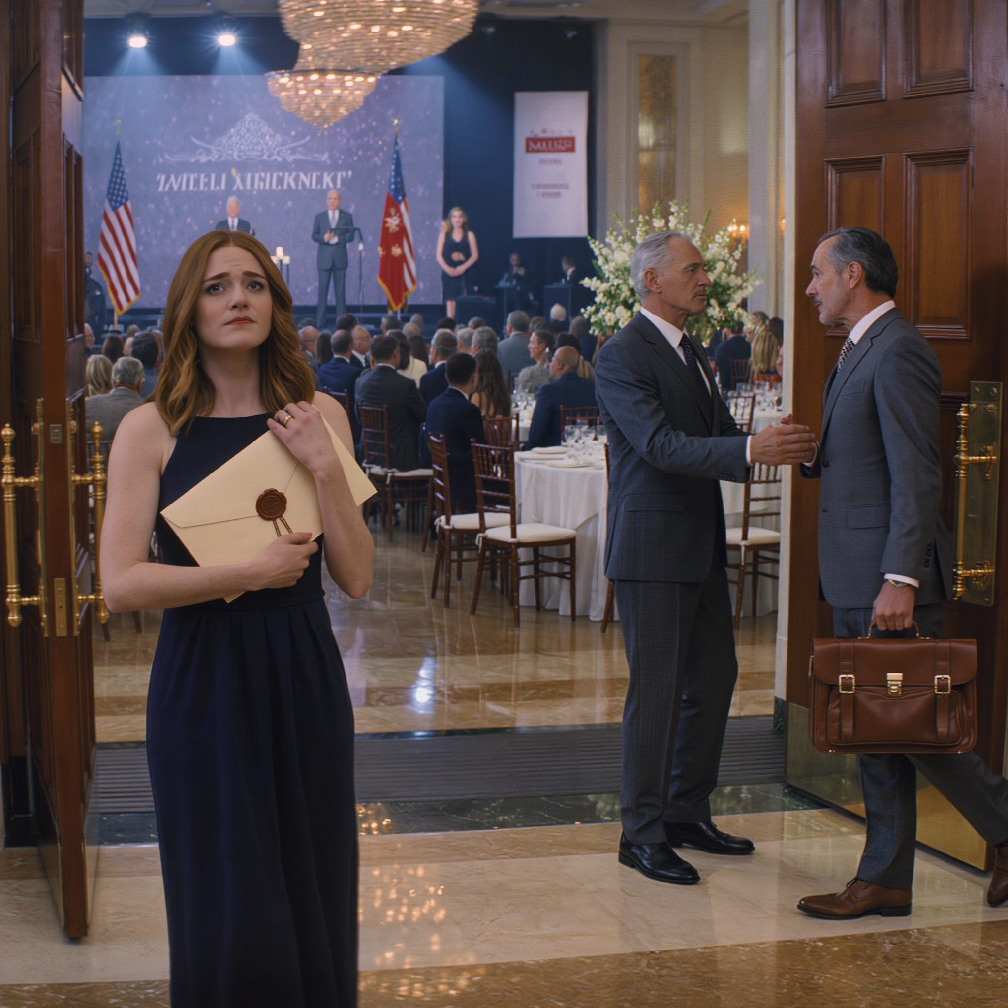 Het feest vond plaats in de grote balzaal van het meest exclusieve hotel van de stad. Driehonderdvijftig gasten waren uitgenodigd. Politici, rechters, rijke investeerders en prominenten vulden de zaal, die baadde in de warme gouden gloed van kristallen kroonluchters. Ik stond bij de ingang en trok nerveus aan de mouwen van mijn jurk. Het was een eenvoudige, zwarte jurk die ik zelf had gekocht. Mijn moeder had me uitdrukkelijk opgedragen niets te opvallends te dragen.