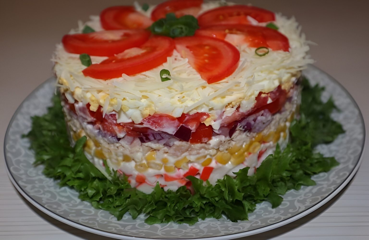 Deze prachtige en smakelijke salade zal gegarandeerd de ster van je feesttafel zijn! Perfect voor speciale gelegenheden en een absolute publiekslieveling. Ingrediënten: 4 eieren 200 g surimisticks (krabsticks) 2 tomaten (1 voor de salade, 1 voor decoratie) 1 kleine rode ui 100 g geraspte kaas 1 blik tonijn (op water of olie, uitgelekt) 1 blikje … Lire plus