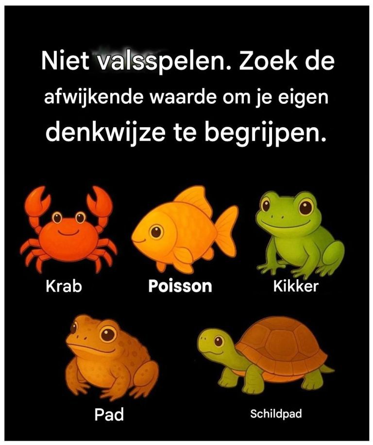 Niet valsspelen. Zoek de afwijkende waarde om je eigen denkwijze te begrijpen.