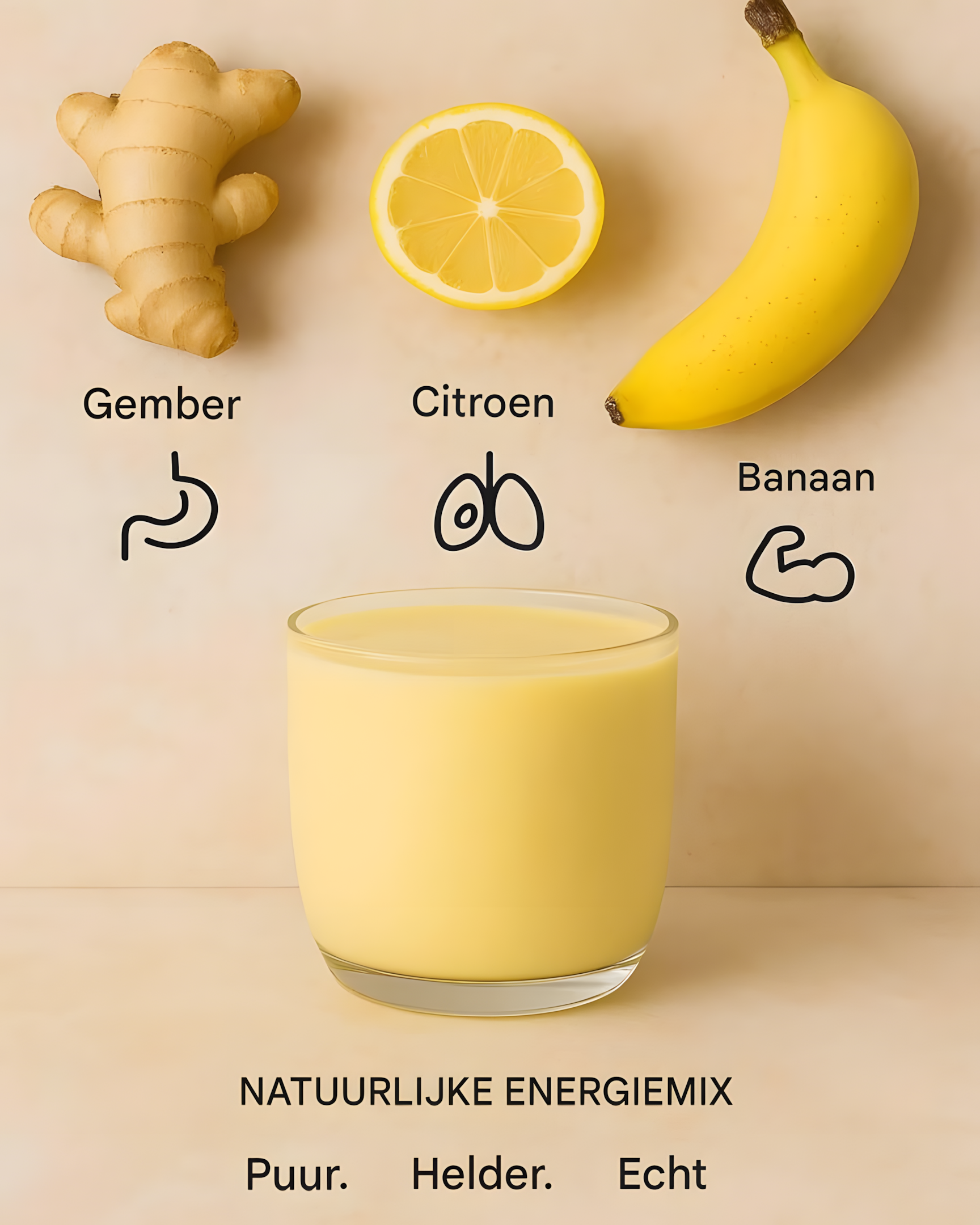 1. Doe de banaan, het citroensap, de gember, de yoghurt en je favoriete drankje in een blender.
