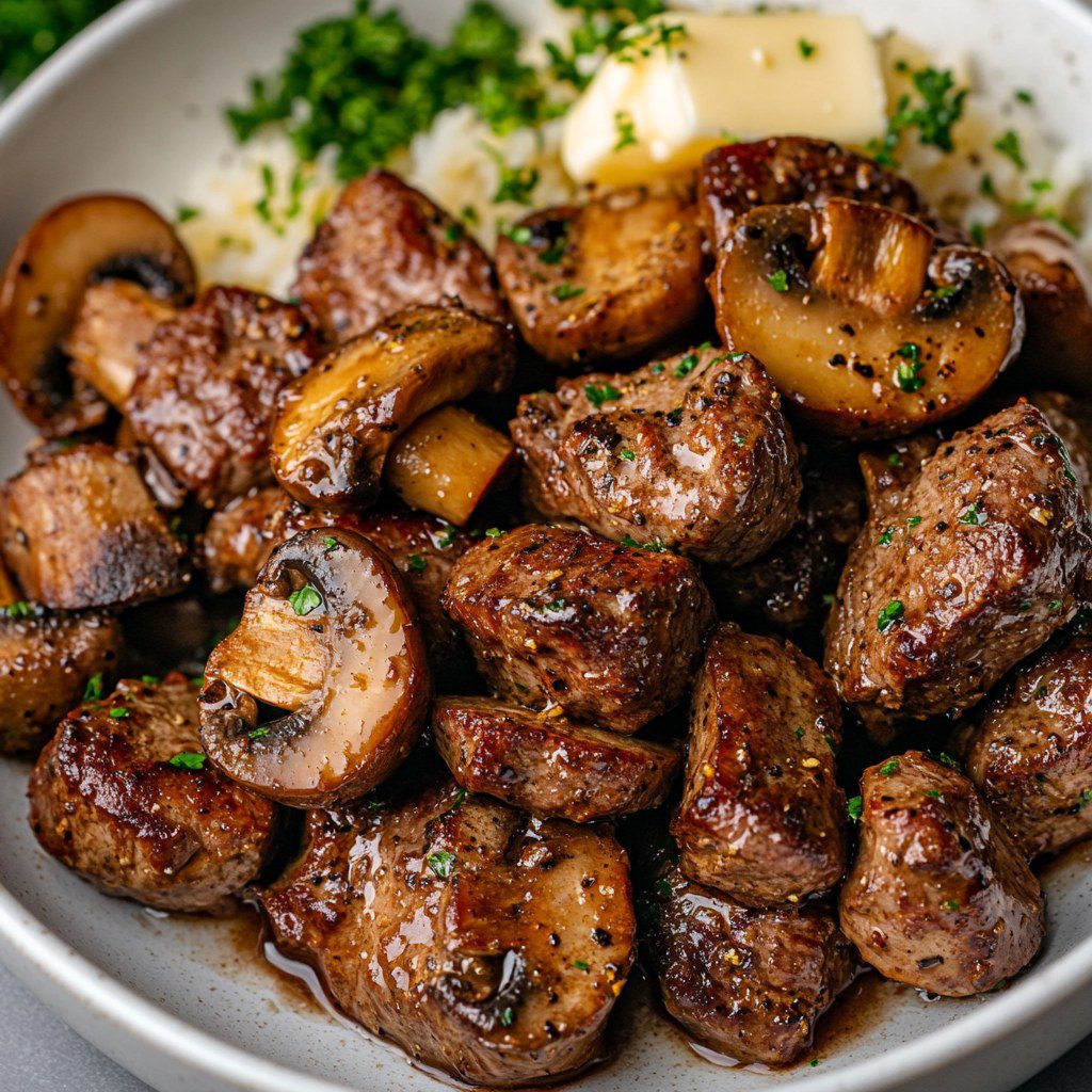 Biefstukjes met Cajunboter en champignons