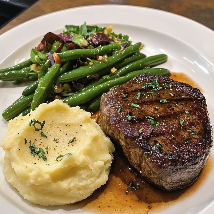 ✔️ Het ultieme comfortfood – Aardappelpuree vormt een gladde en smaakvolle basis voor malse stukjes biefstuk.