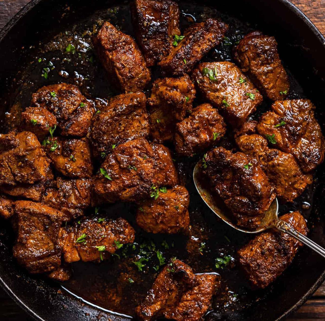 Geniet van dit snelle en smaakvolle gerecht met malse stukjes biefstuk en knapperige aardappelen, perfect bereid in je airfryer. De knoflookboter zorgt voor een extra laag heerlijke smaak die onweerstaanbaar is!