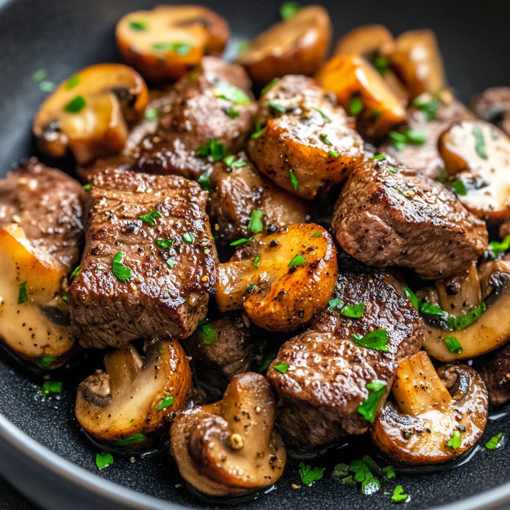 Cajun boterbiefstukjes met champignons (Airfryer)