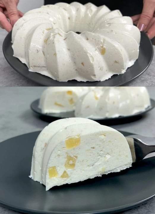 Kwarkgelei met Ananas – Een Dessert in 7 Minuten 🍍 Ingrediënten: Kwark: 800 g Water: 100 ml Ingeblikte ananas: 580 g Gelatine: 30 g Bereidingswijze: Stap 1: Kwarkbasis voorbereiden Doe de kwark in een kom en gebruik een staafmixer om het tot een gladde, romige massa te mengen. Stap 2: Gelatine voorbereiden