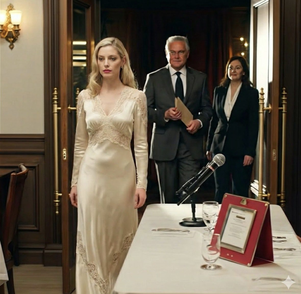 Tegenover me boog een vrouw met parels zich naar een andere gast, haar stem fluisterend en vol nieuwsgierigheid. ‘Dat is zij,’ zei ze zachtjes. ‘Van de marine. Nooit getrouwd.’ De woorden waren niet wreed. Niet echt. Gewoon wat zoetsappig. Ik had al lang geleden geleerd dat beleefde wreedheid dieper snijdt. Het laat je stilletjes bloeden … Lire plus