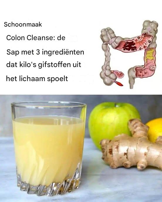 Heeft u last van een opgeblazen gevoel, indigestie of een zwaar gevoel? Dit zijn veelvoorkomende tekenen van overbelasting van de dikke darm. Een trage of verstopte dikke darm kan leiden tot vermoeidheid, spijsverteringsproblemen en andere gezondheidsproblemen. Gelukkig is er een eenvoudige en natuurlijke oplossing om uw lichaam te helpen zichzelf te reinigen: een detox sapje gemaakt van appels, gember en citroen. Deze drank helpt gifstoffen af te voeren en bevordert een soepele spijsvertering. Dit is hoe het werkt en hoe je het in je routine kunt opnemen.