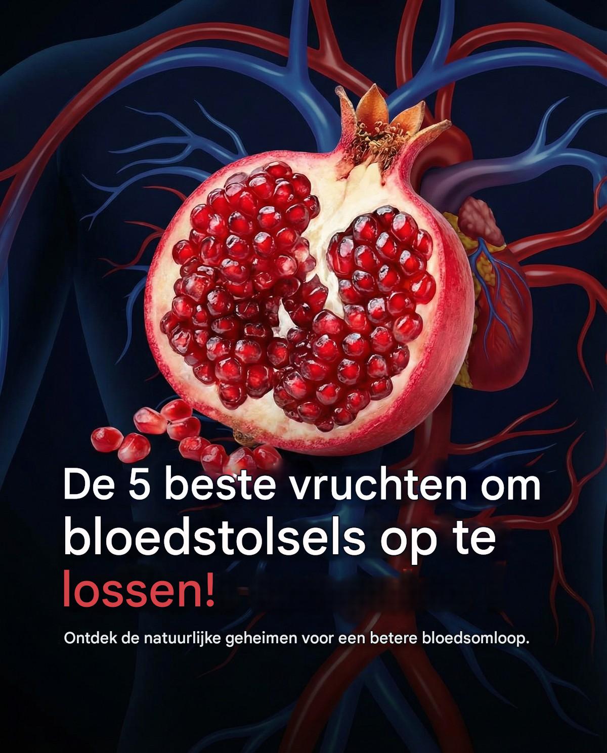 De granaatappel is niet alleen een lust voor het oog, maar speelt ook een belangrijke rol bij het voorkomen van bloedstolsels. Hij is rijk aan polyfenolen, waaronder punicalagine, die bekend staan om hun antitrombotische eigenschappen. Deze stoffen verminderen de samenklontering van bloedplaatjes, waardoor bloedcellen niet samenklonteren en stolsels vormen. Bovendien stimuleert granaatappelsap de aanmaak van stikstofmonoxide, wat helpt bij het verwijden van bloedvaten en het verbeteren van de bloedsomloop.