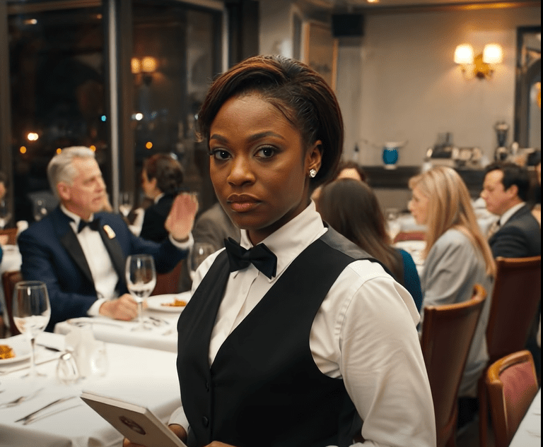 Miljardair geeft in een vreemde taal een opdracht om de zwarte serveerster te vernederen – hij had dit antwoord nooit verwacht.
