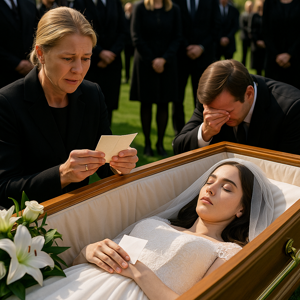De jonge vrouw lag daar alsof ze vredig sliep. Maar in haar hand hield ze iets hards: een opgevouwen stuk papier.