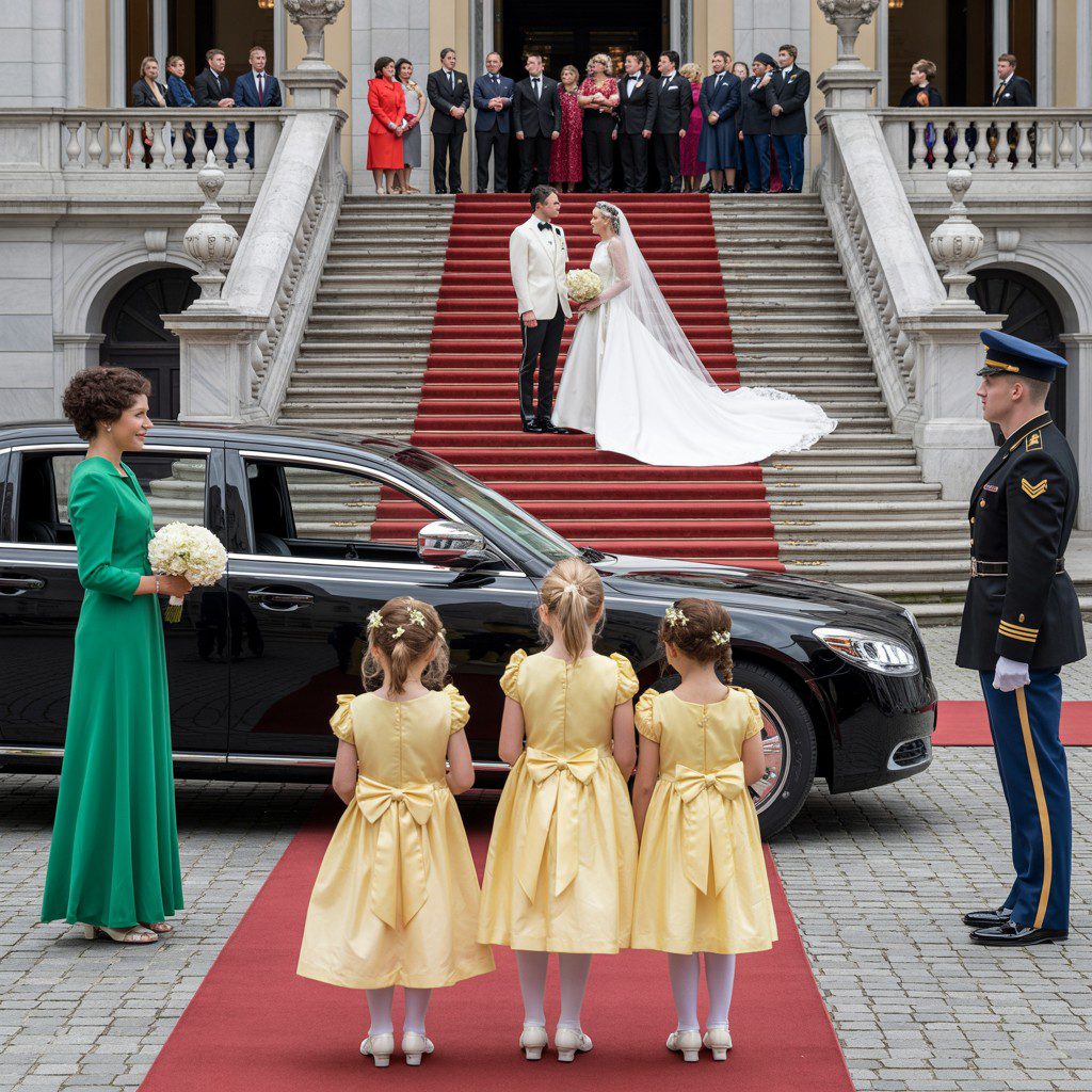 Een zwarte limousine stopte. De chauffeur opende de deur en drie identieke kleine meisjes sprongen op de rode loper, hun gele jurkjes glinsterden in het licht. Ze hielden elkaars hand vast, giechelden zachtjes en hun gouden krullen dansten op en neer. Een collectieve zucht van verbazing ging door de menigte.