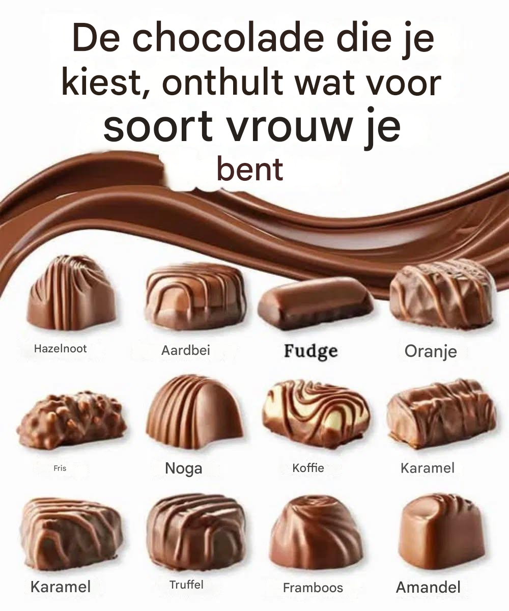 Het lijkt misschien gewoon een simpele trek in iets zoets, maar het soort chocolade dat je het meest aanspreekt, kan verrassend veel zeggen over je persoonlijkheid. Kies gewoon intuïtief — je eerste gevoel is meestal het juiste.
