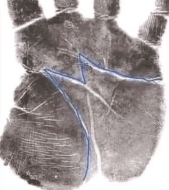 Laten we het vanuit een andere invalshoek bekijken. De M- vorm ontstaat wanneer verschillende hoofdlijnen – de hartlijn , de hoofdlijn en de levenslijn – met elkaar verweven zijn.