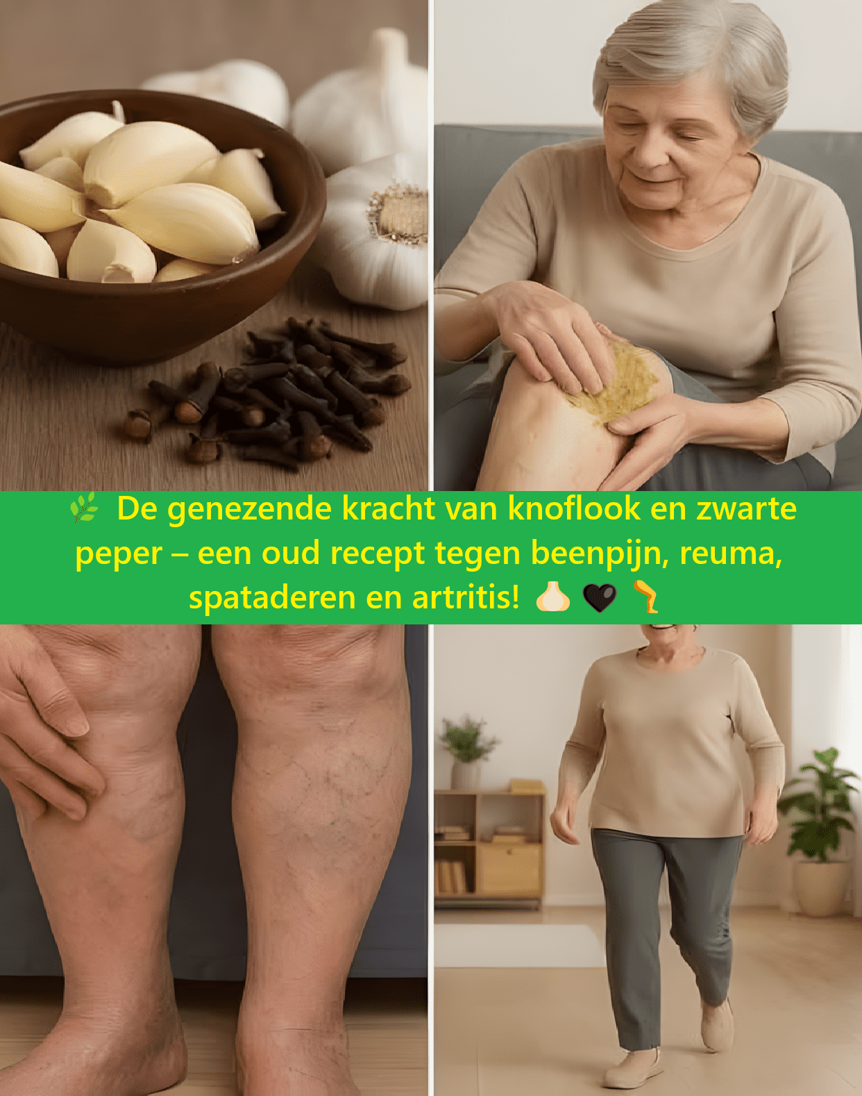 Als je moeder – of iemand die je dierbaar is – kampt met aanhoudende beenpijn, stijfheid of zwelling door artritis, spataderen of reuma, is de oplossing misschien wel net zo dichtbij als je keuken. Knoflook en zwarte peper, twee veelvoorkomende basisproducten in de voorraadkast, vormen een krachtig natuurlijk middel tegen ontstekingen, een slechte bloedsomloop en chronische pijn.