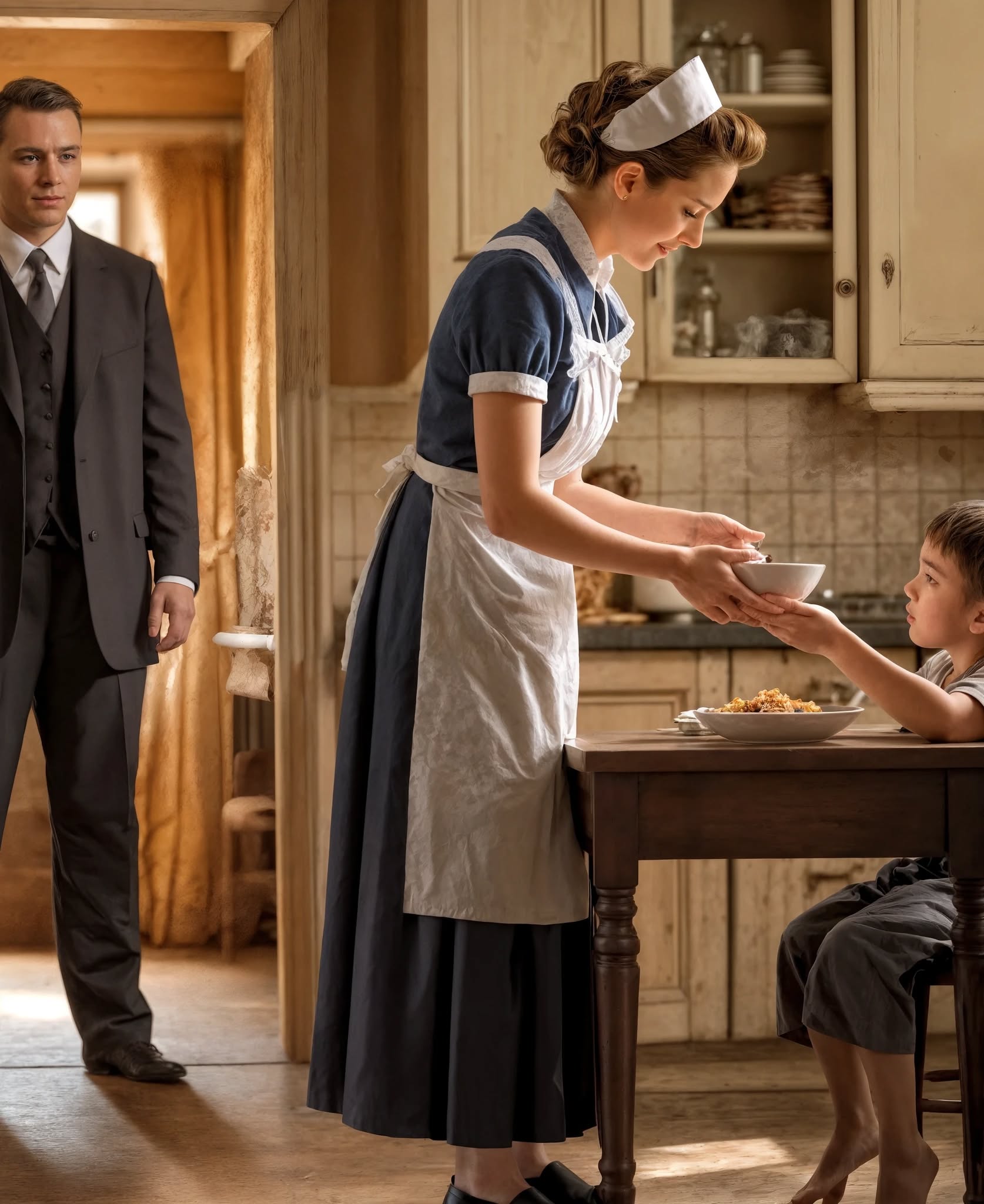 Wat Maria niet wist, was dat James Lancaster, de eigenaar, eerder dan verwacht thuis was gekomen. Zijn reis was afgebroken door een schijnbaar eindeloze zakelijke bijeenkomst. Toen hij de oprit bereikte, zag hij het halfopen hek en fronste zijn wenkbrauwen. Binnen sloop hij op zijn tenen, in de verwachting de gebruikelijke stilte van het lege huis aan te treffen. Toen hoorde hij een rinkelend geluid van metaal, het zachte geluid van een lepel op porselein. Geïntrigeerd volgde hij het geluid naar de keuken – en ontdekte daar het dienstmeisje, gebogen in een hoek, die toekeek hoe een klein, armzalig kind zijn maaltijd van een fragiel bordje verslond. Het tafereel was zo aangrijpend dat hij bijna zijn servet liet vallen.