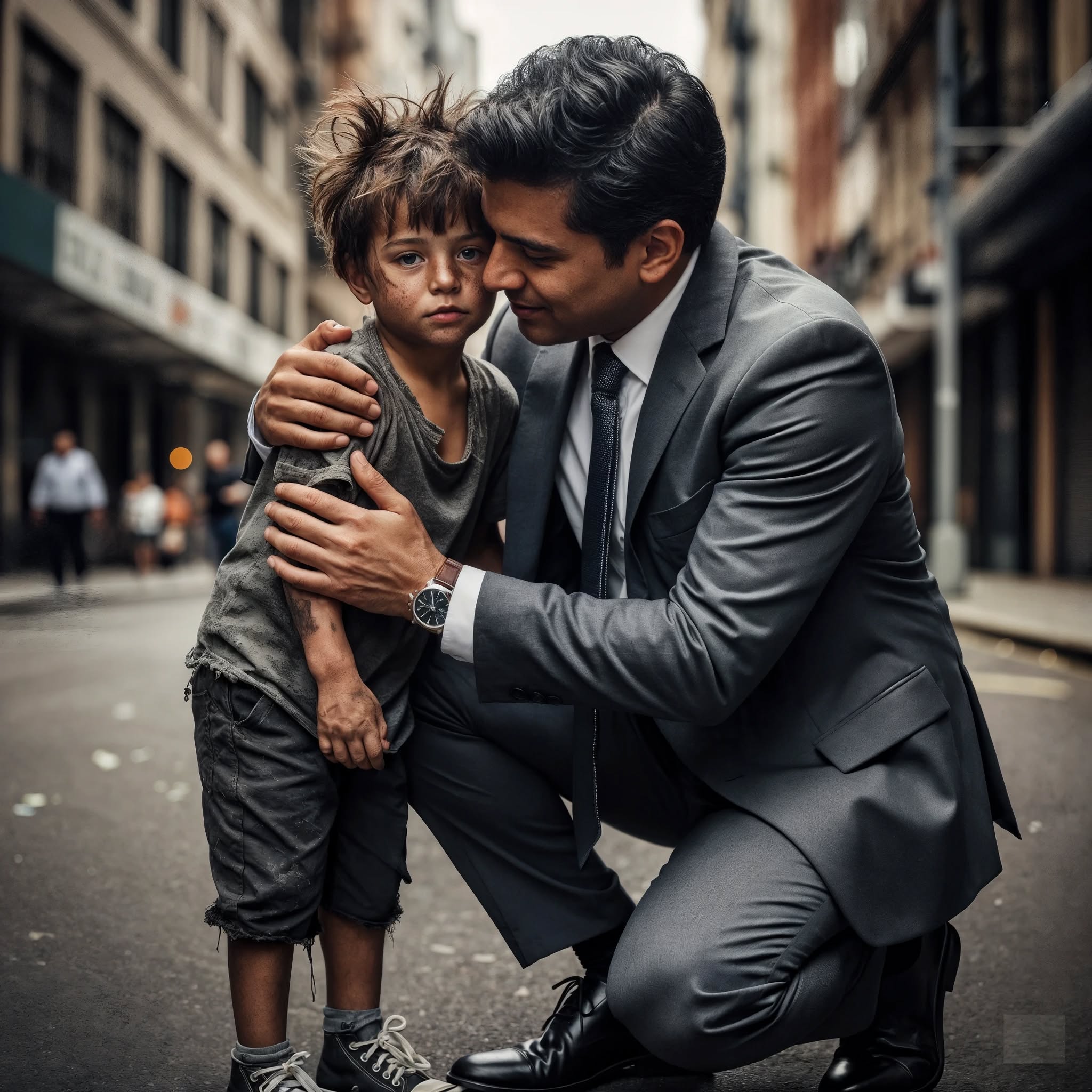 Een jongetje, misschien acht of negen jaar oud, in een gescheurde korte broek en een shirt vol vuil en roet, staarde naar de grond. Zijn gezicht was besmeurd, zijn haar warrig en zijn sportschoenen vielen uit elkaar. Voorbijgangers negeerden hem alsof hij niet bestond. David minderde eerst vaart, maar stopte niet. Hem was geleerd dat geld geven aan straatkinderen niet altijd de oplossing was.