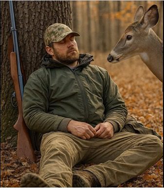 Hij besloot een pauze te nemen, ging bij een grote eik zitten, leunde zijn geweer tegen de stam… en realiseerde zich niet dat hij in slaap viel toen zijn ogen dichtvielen.