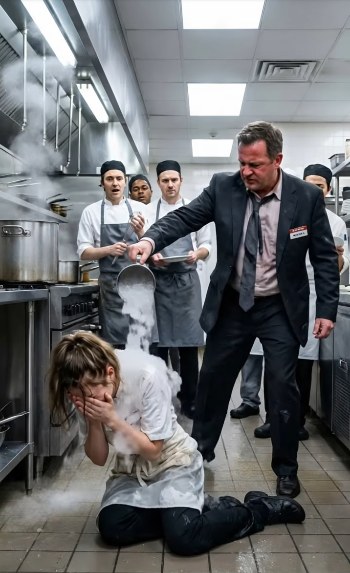 Het geluid van het ijs dat haar gezicht raakte, galmde door de keuken, die in een verbijsterde stilte bleef staan. De andere medewerkers stonden roerloos, niet in staat om te reageren.