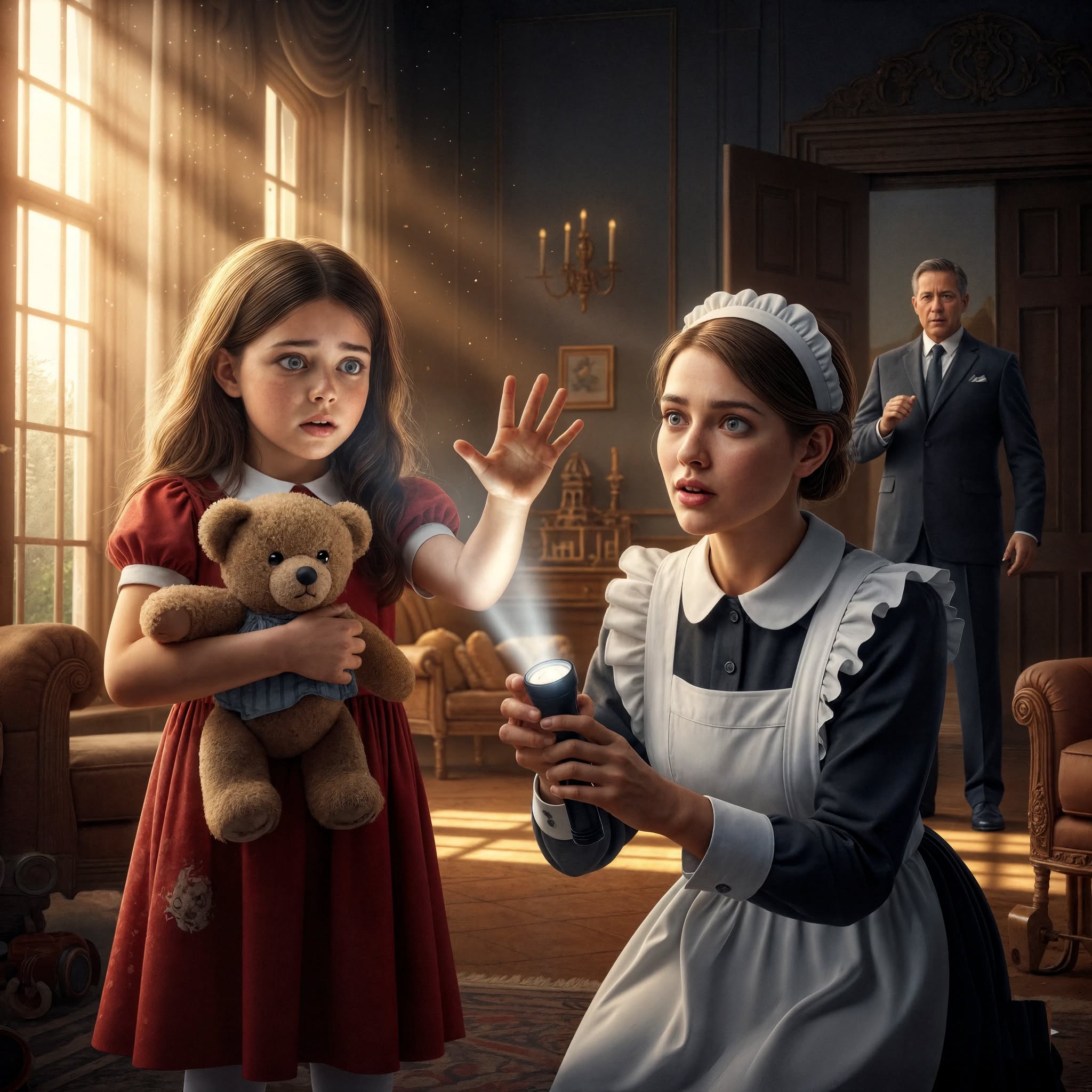 Verteerd door schuldgevoel had Alden zijn leven rond deze pijnlijke waarheid opgebouwd. Hij kocht Lily de mooiste brailleboeken, nam de beste verzorgers in dienst en stortte zich volledig op zijn werk. Het landhuis werd een gevangenis van stilte – een vader die te bang was om zijn liefde te tonen, en een kind dat in het donker door de lange gangen zwierf en zijn speelgoed stevig vasthield.