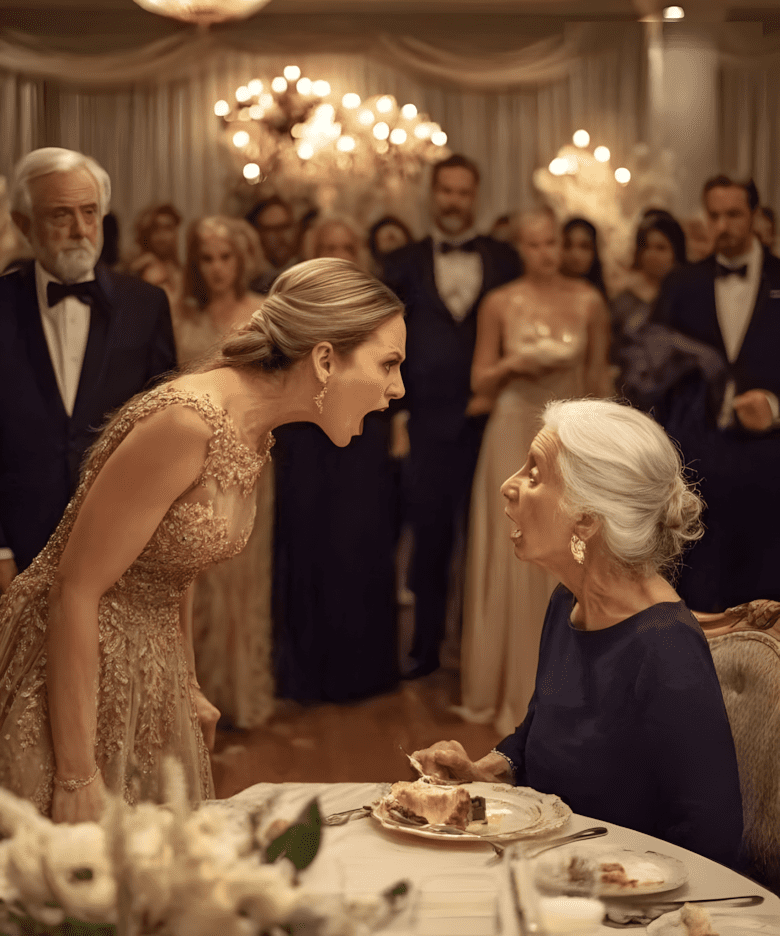 Ik zag de moeder van de bruid, Margaret Davenport, glinsterend in goudlamé naast een ijssculptuur van zwanen. Diamanten sierden haar hals en haar glimlach was tot in de puntjes verzorgd. Toen haar blik op mij viel, vervaagde de glimlach, maar kwam toen met een bewapende gratie terug.