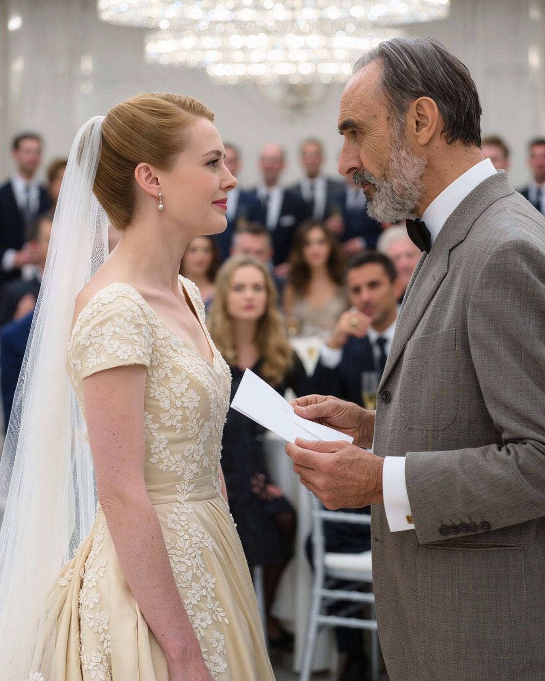 De rijke familieleden van de bruidegom spotten met het eenvoudige huwelijksgeschenk van zijn arme vader, totdat de bruid de envelop opende en het in de zaal muisstil werd.