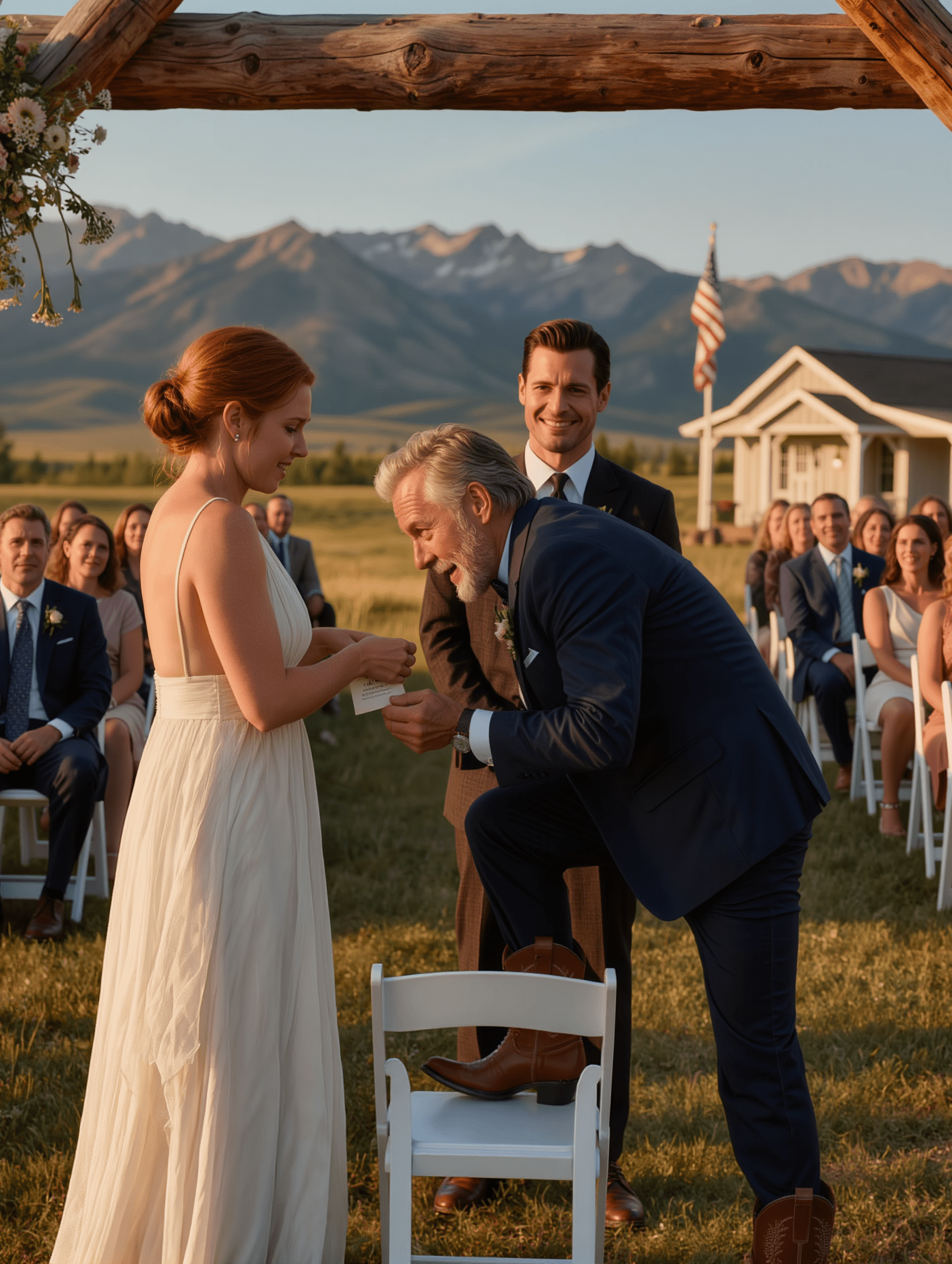 De verloofde van mijn dochter bleef maar vragen naar onze familieboerderij, maar ik wuifde het weg als beleefdheidsgepraat. Toen mijn dochter voor het altaar stond, klaar om ‘ja’ te zeggen tegen het huwelijk, stopte ze me stiekem een ​​briefje in haar bruidsboeket: « Papa, help me alsjeblieft. » Ik sprong meteen overeind…