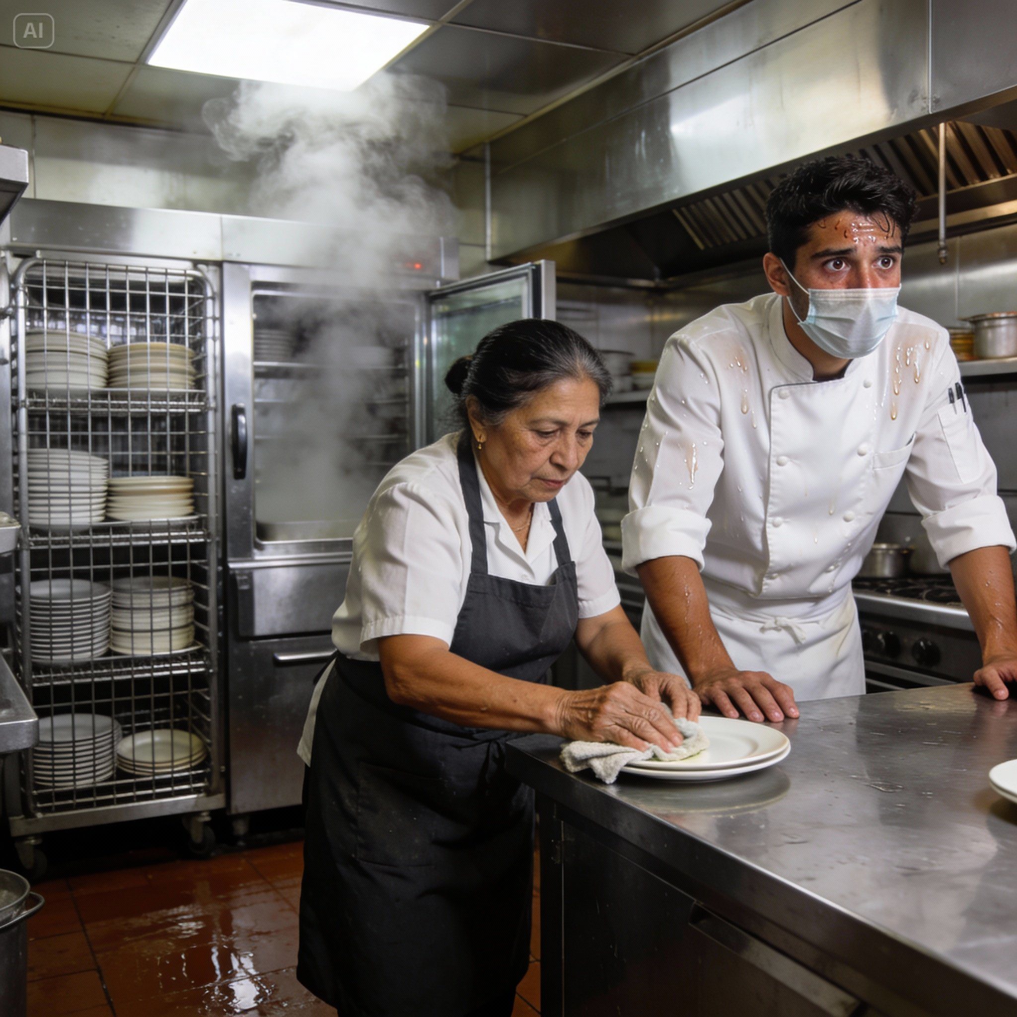 Het was een oudere zwarte vrouw, misschien in de vijftig, die een gemorste frisdrank opruimde bij de ingang van de kantine. Haar uniform was saai grijs, een beetje gekreukt, maar ze bewoog zich met een stille waardigheid, een rechte houding die haar omgeving leek te trotseren.