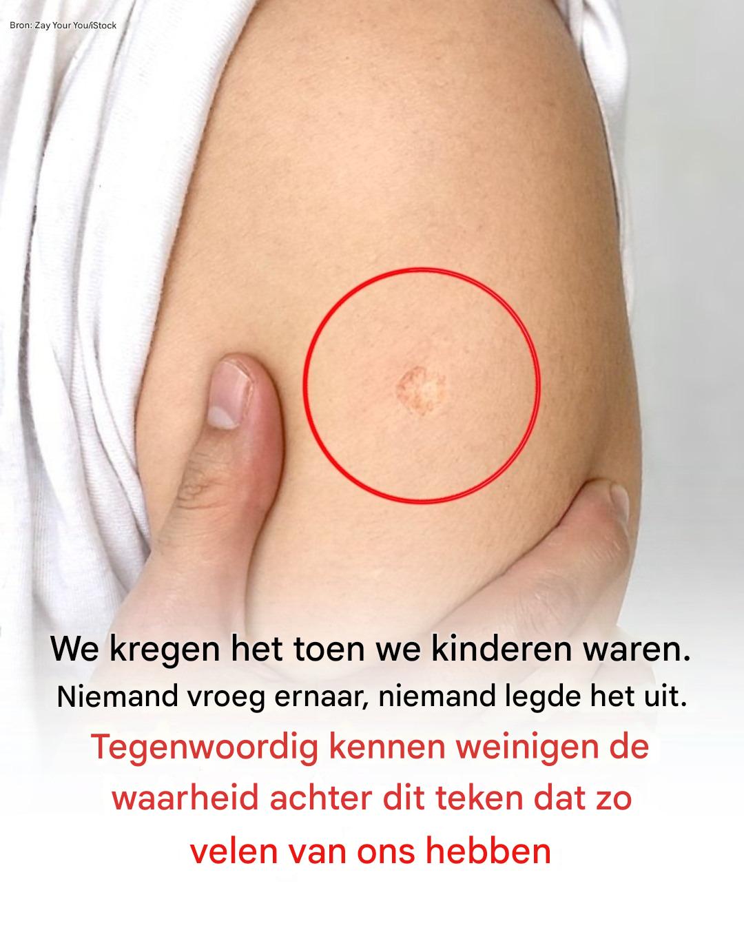 Het ronde litteken op de bovenarm is inderdaad afkomstig van een vaccinatie. Het is specifiek het litteken van het BCG-vaccin (Bacillus Calmette-Guérin), dat bescherming biedt tegen tuberculose (tbc).