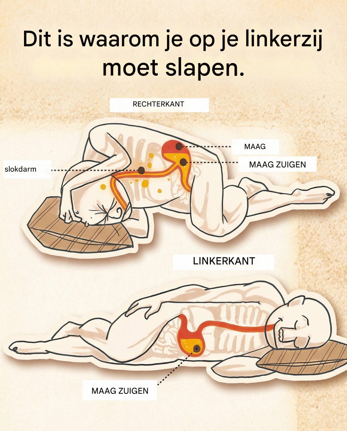 Slapen op je rechterzij kan spijsverteringsproblemen verergeren, terwijl slapen op je linkerzij de symptomen juist kan verbeteren.
