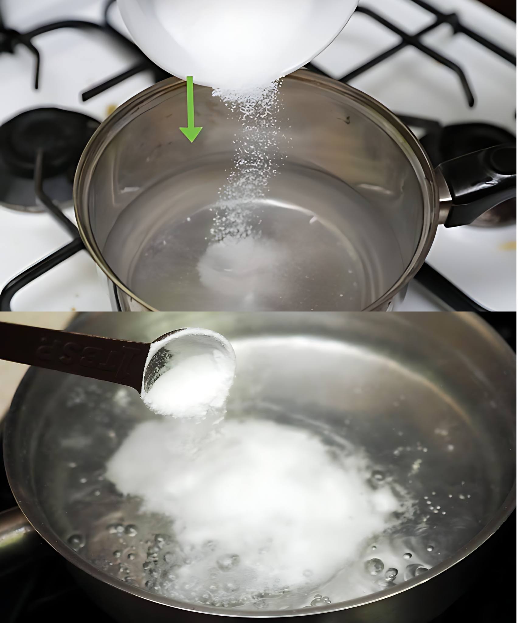 2- Voeg een eetlepel zuiveringszout toe aan kokend water.