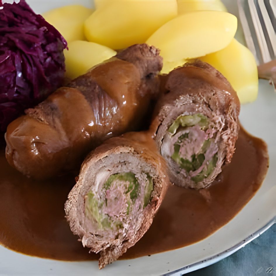 💛 Deze authentieke Duitse runderrouladen zijn gevuld met spek, mosterd en ui, langzaam gegaard in een rijke saus. Een heerlijk traditioneel gerecht dat perfect is voor een hartige, huisgemaakte maaltijd! 🍷🔥