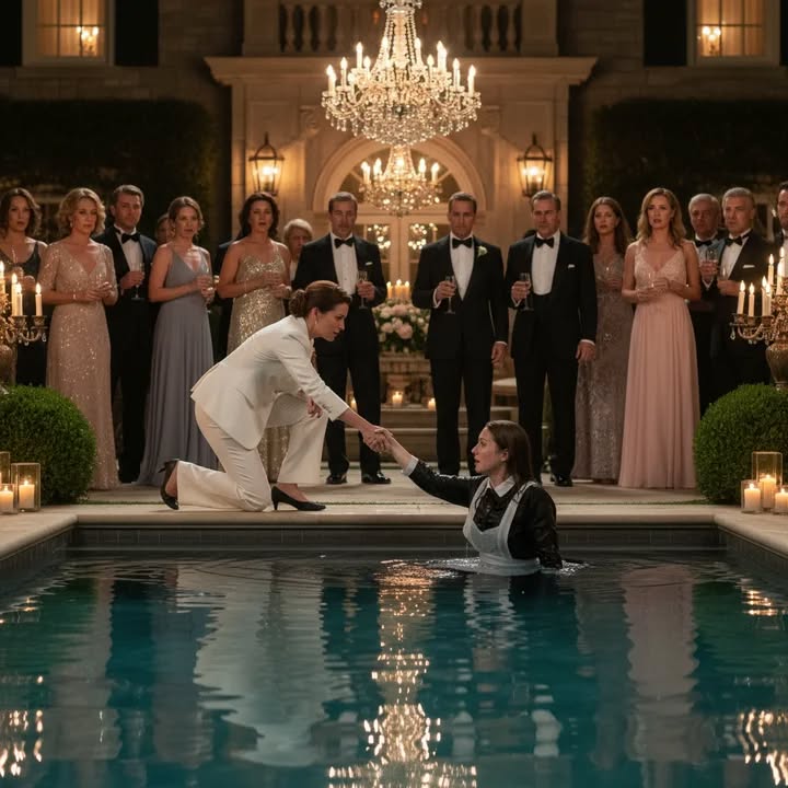 Een arme serveerster wordt lachend in een zwembad geduwd – Dan komt er een miljonair binnen en de afloop is verrassend…