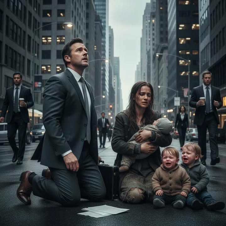 Een dakloze alleenstaande moeder zakte in elkaar aan de kant van de weg, haar tweejarige tweeling hulpeloos naast haar huilend. Niemand greep in – totdat er toevallig een miljardair voorbij kwam. Hij was stomverbaasd toen hij besefte dat de tweeling sprekend op hem leek…