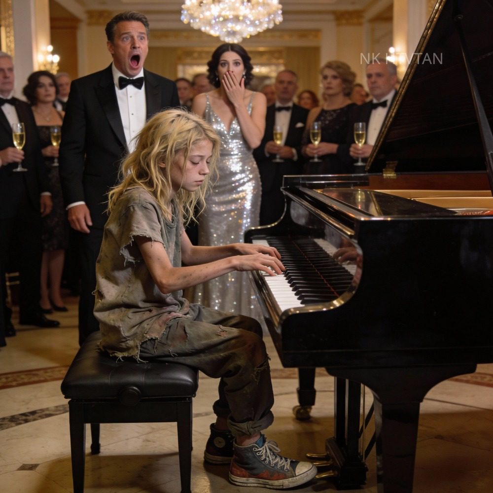Een heel mager, dakloos meisje werd door twee bewakers naar de uitgang van een luxueus liefdadigheidsgala begeleid. Ze wierp een blik op de piano en riep: « Mag ik piano spelen in ruil voor een bord eten? »