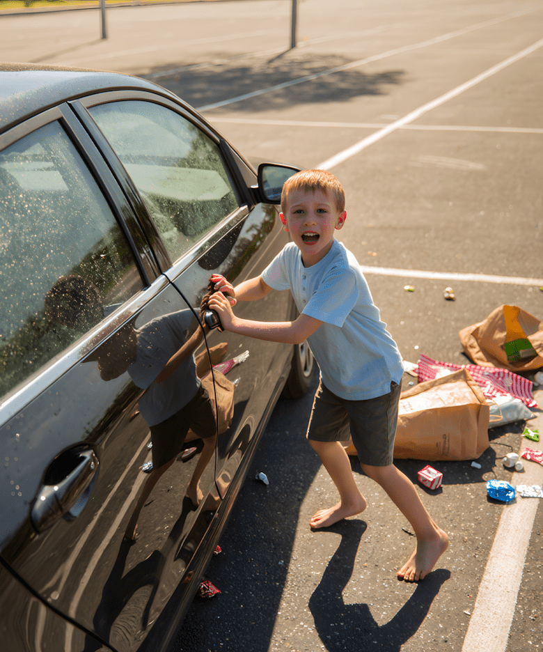 Het had een gewone middag moeten worden. Ik was net klaar met winkelen en liep naar mijn auto toen ik iets ongewoons zag: een kleine jongen, op blote voeten op het blakende asfalt. Zijn kleine vuistjes sloegen keer op keer tegen de deur van een zwarte sedan.
