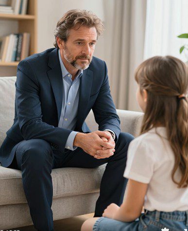 Op een ochtend, toen hij de keuken binnenkwam om koffie te zetten, zag de miljardair Emily, verdiept in haar schriftjes. Hij ging aan tafel zitten, maar zijn ogen bleven naar haar terugkeren. Toen liep hij naar haar toe en begon met het kleine meisje te praten.