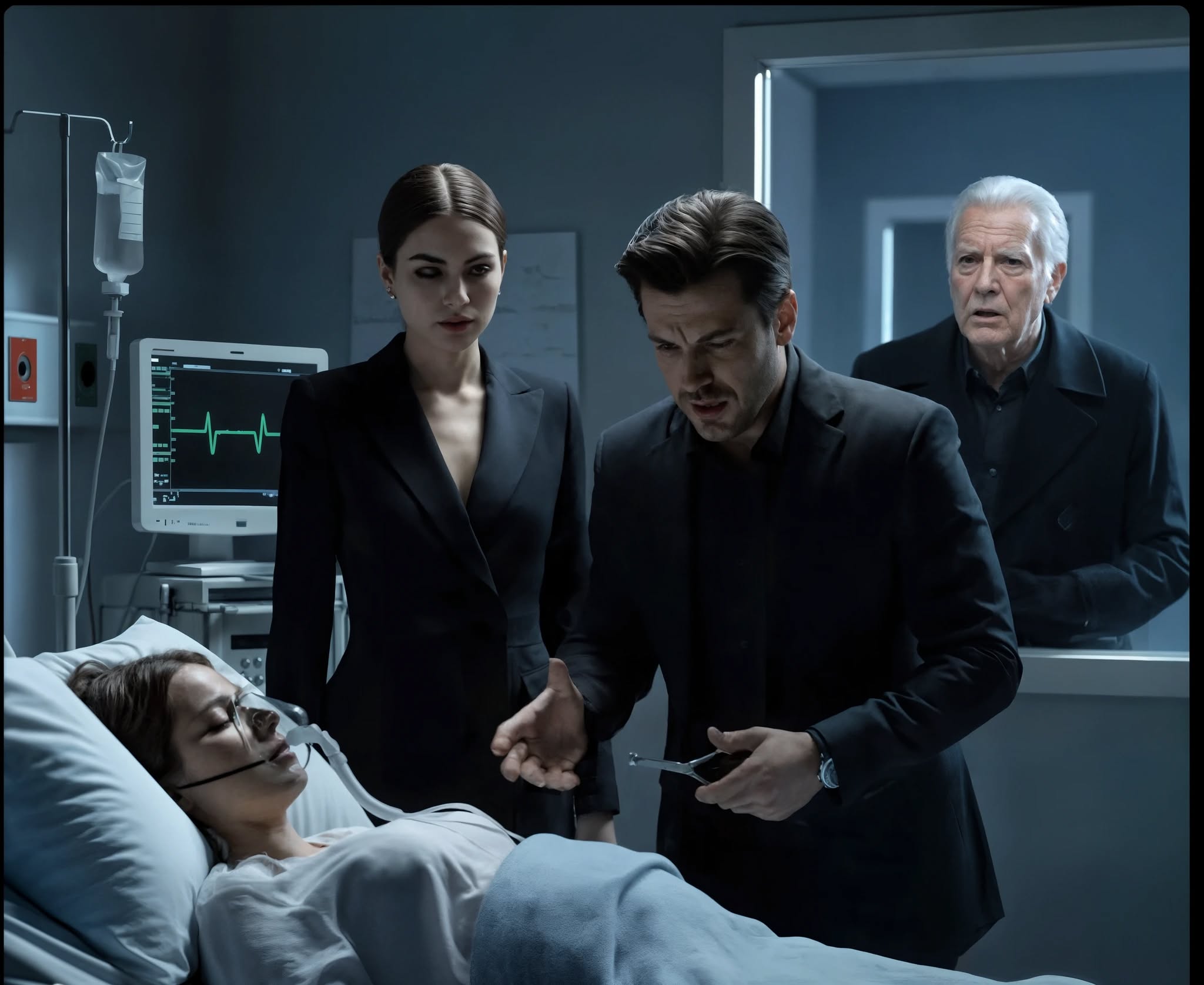 In het schemerige licht van de kamer liep Edward naar het bed. Het zachte gesis van de zuurstof vulde de stilte. Hij stak zijn hand in zijn zak en haalde er een chirurgische schaar uit. Zijn hand trilde, niet van schuldgevoel, maar van angst ontdekt te worden. ‘Je zult eindelijk in vrede rusten,’ mompelde hij. Met een snelle beweging knipte hij de zuurstofslang door. De monitor loeide, alarmen loeiden en rode lampjes flitsten door de hele kamer. Isabella schokte terwijl ze naar adem hapte. Edward verstijfde. Hij had zo’n commotie niet verwacht.