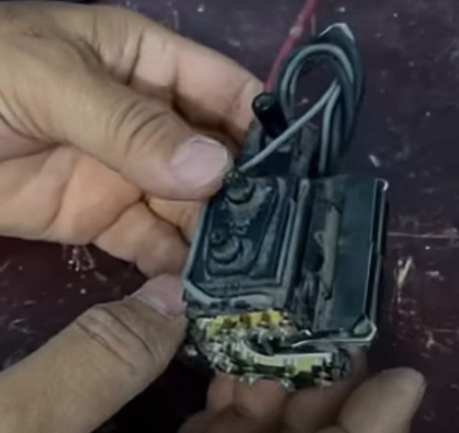 Als we naar de andere kant van de transistor kijken, zien we dat deze vier uitgangen heeft. We gebruiken zowel aansluiting nummer één als aansluiting nummer vier en verbinden deze met het hogedrukapparaat.