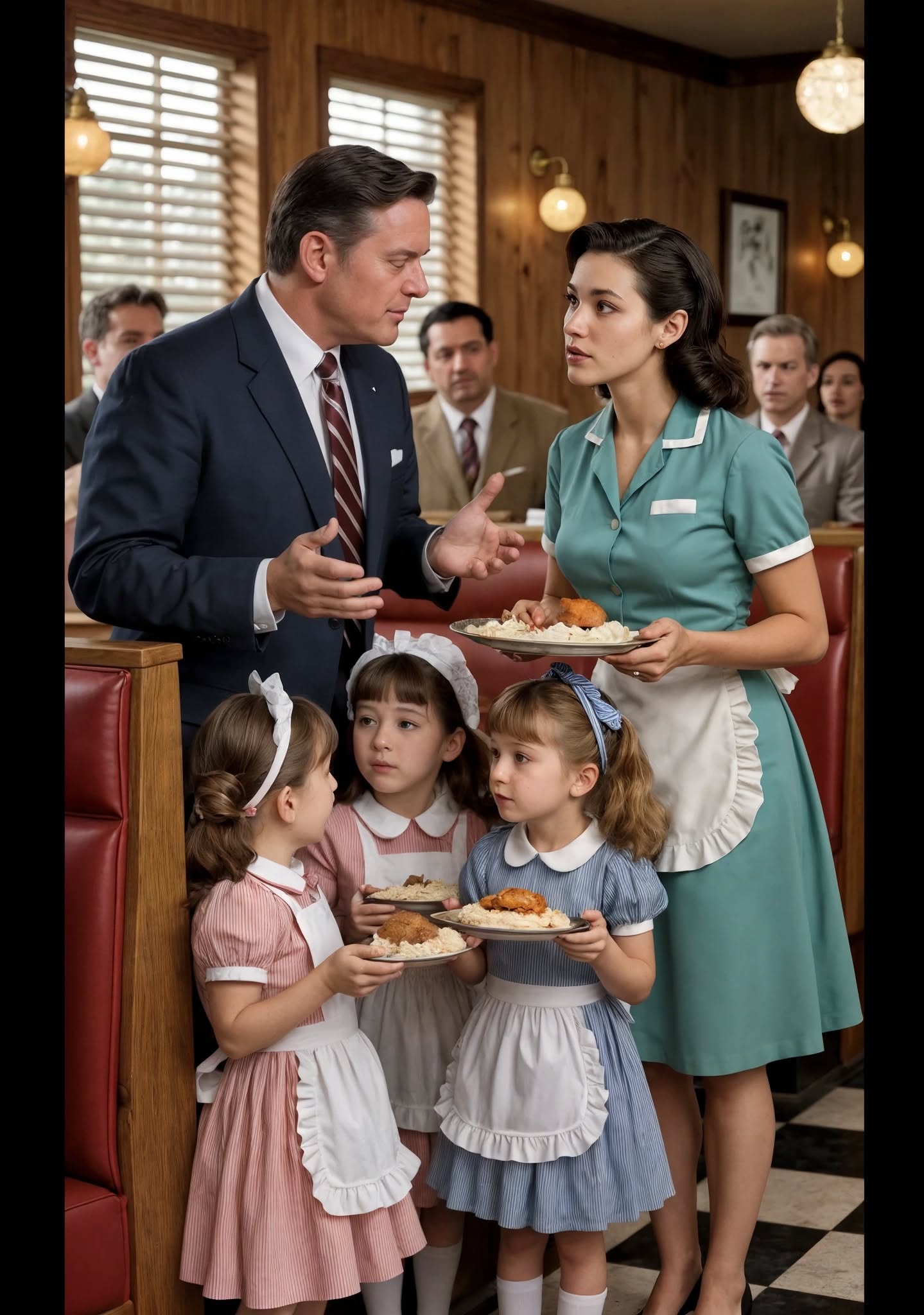 Op een regenachtige avond in een rustig stadje zag Emily Parker, een jonge serveerster, vier kleine meisjes dicht tegen het raam van haar eethuis gedrukt zitten. Hun kleren waren gescheurd, hun gezichten bleek en in hun ogen was de stille pijn van honger en eenzaamheid te lezen. Emily’s hart zonk: deze kinderen hadden geen familie, geen warm thuis om naar terug te keren.