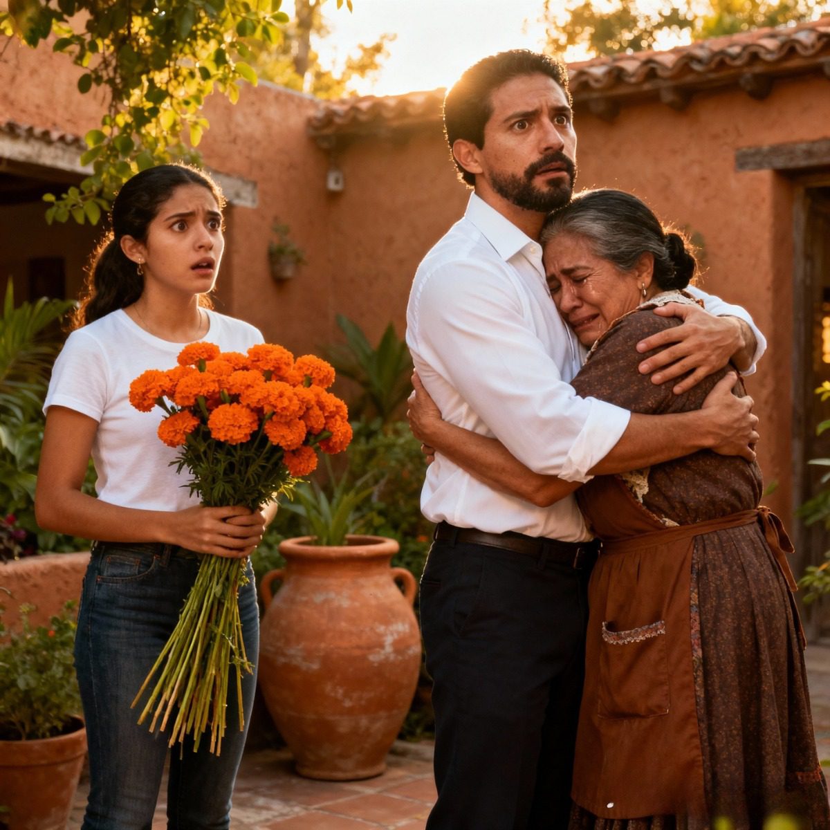 Die dag bracht ik hem naar huis. Santiago droeg een wit shirt en had een boeket  goudsbloemen bij zich  , de bloem waarvan ik hem had verteld dat mijn moeder er altijd al dol op was geweest. Ik pakte zijn hand terwijl we door de oude poort van het huis in  Tlaquepaque liepen  . Mijn moeder was de planten aan het water geven en zag ons.
