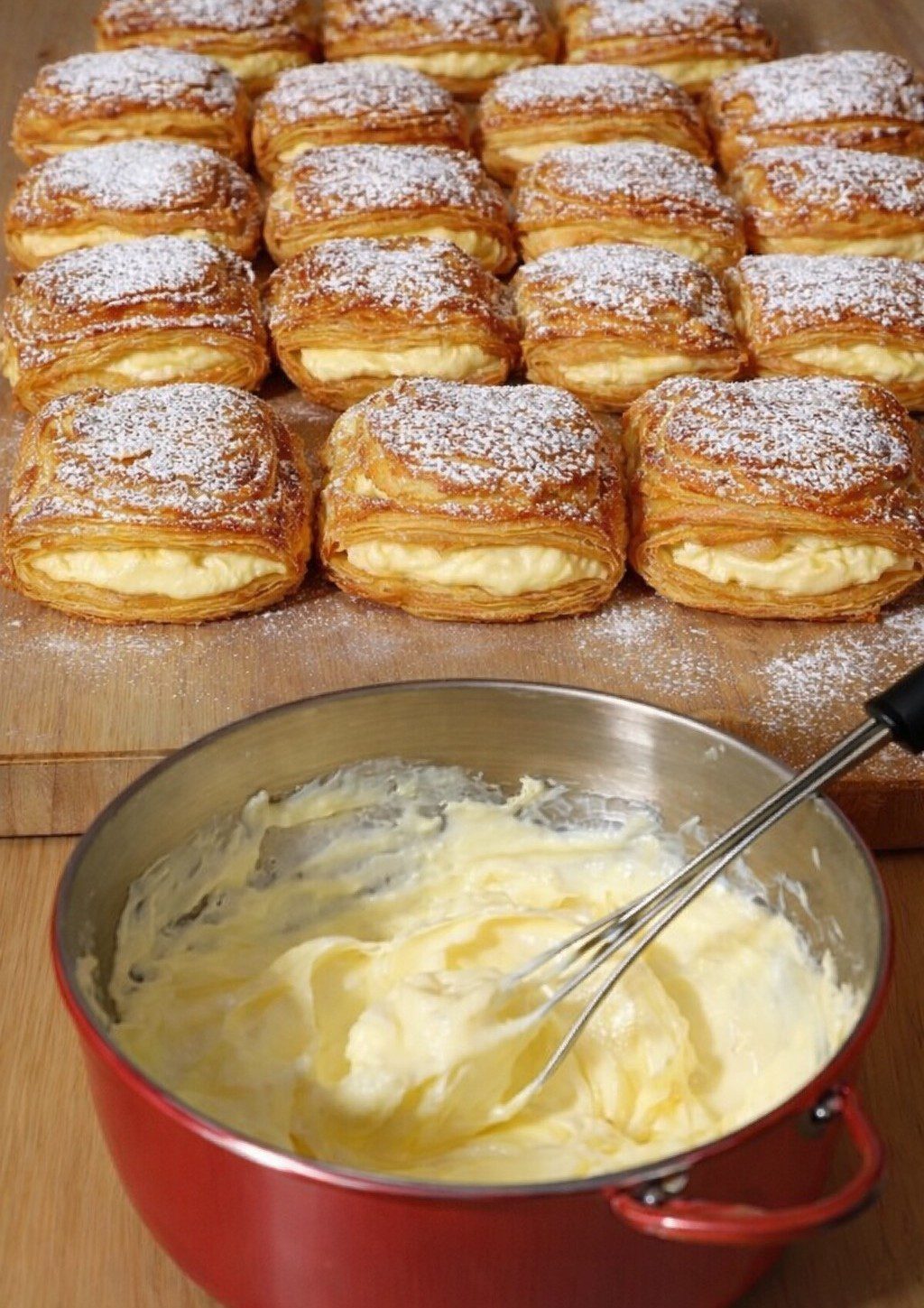 Een elegant, eenvoudig en onweerstaanbaar dessert. Het knapperige bladerdeeg met een lichte karamelsmaak, gecombineerd met een delicate vanillecrème, is een klassieke combinatie die indruk maakt zonder moeite. Perfect voor zowel een feestmaal als een snelle huisgemaakte zoetigheid.