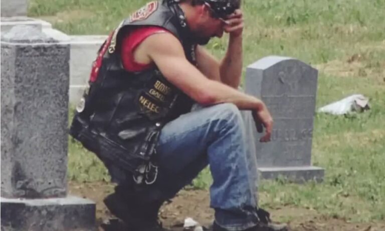 Hij bracht nooit bloemen mee. Hij zei geen woord. Hij zat met gekruiste benen bij Sarah’s grafsteen, zijn hoofd gebogen, zijn handen zachtjes rustend op het gras. Een uur lang. Toen drukte hij zijn handpalm tegen de steen en vertrok.