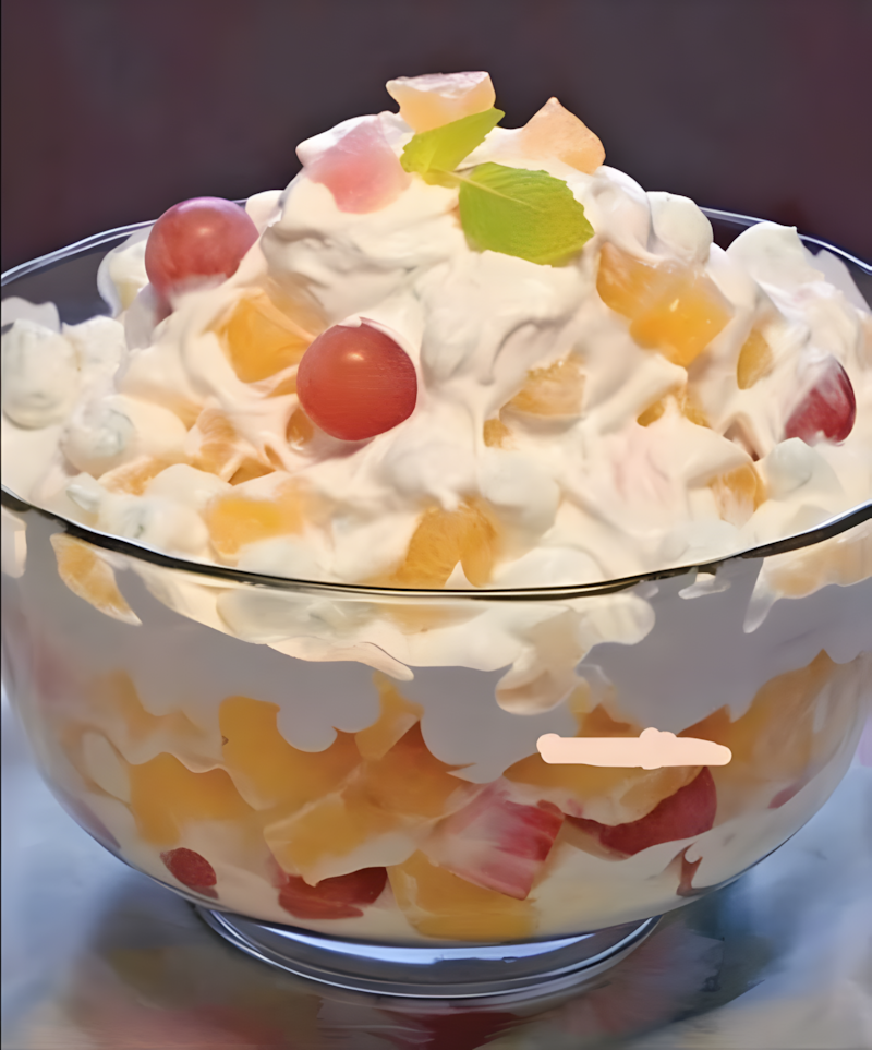 Ambrosiasalade is een klassiek Amerikaans dessert dat al generaties lang op tafel staat, vaak tijdens de feestdagen of familiebijeenkomsten. De naam « ambrosia » verwijst naar het voedsel van de goden in de Griekse mythologie, wat impliceert dat het gerecht een heerlijke delicatesse is, goddelijk.