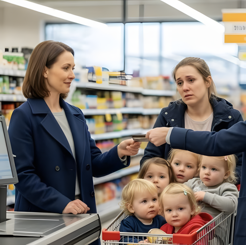 Ik laadde de vijf in de minivan, zette ze in hun stoeltjes en liep nog één keer door de gangen van de supermarkt.